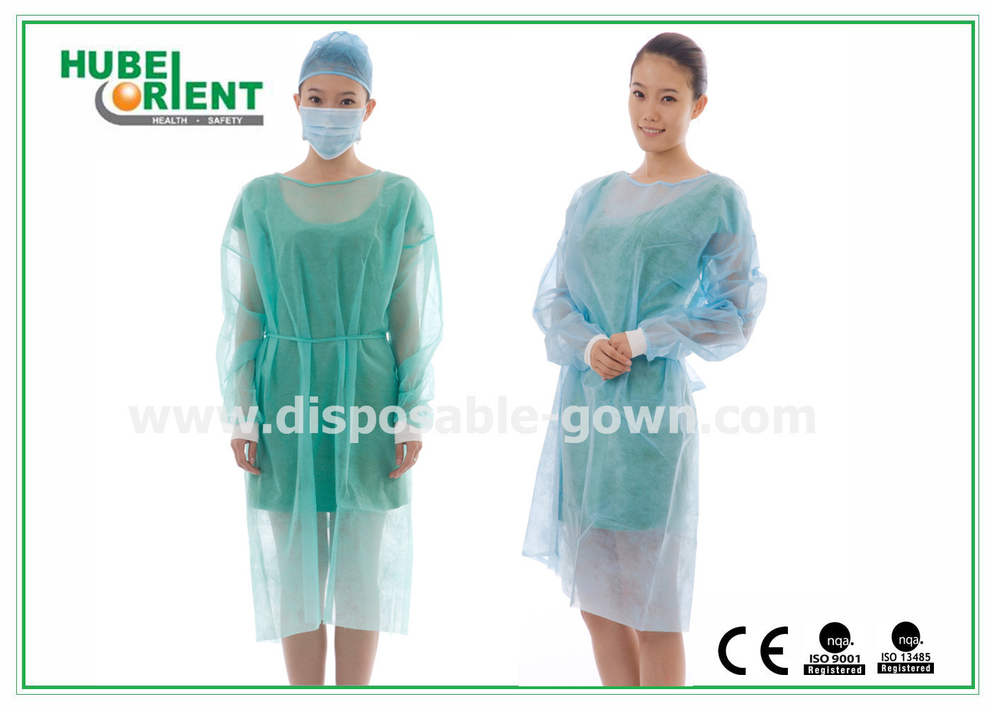 ใส่ผ้าคลุมกักตัวแบบใช้ในทางการแพทย์แบบใช้ในครั้งเดียว มีข้อมือผูกสําหรับโรงพยาบาล ป้องกันแบคทีเรียและอนุภาค