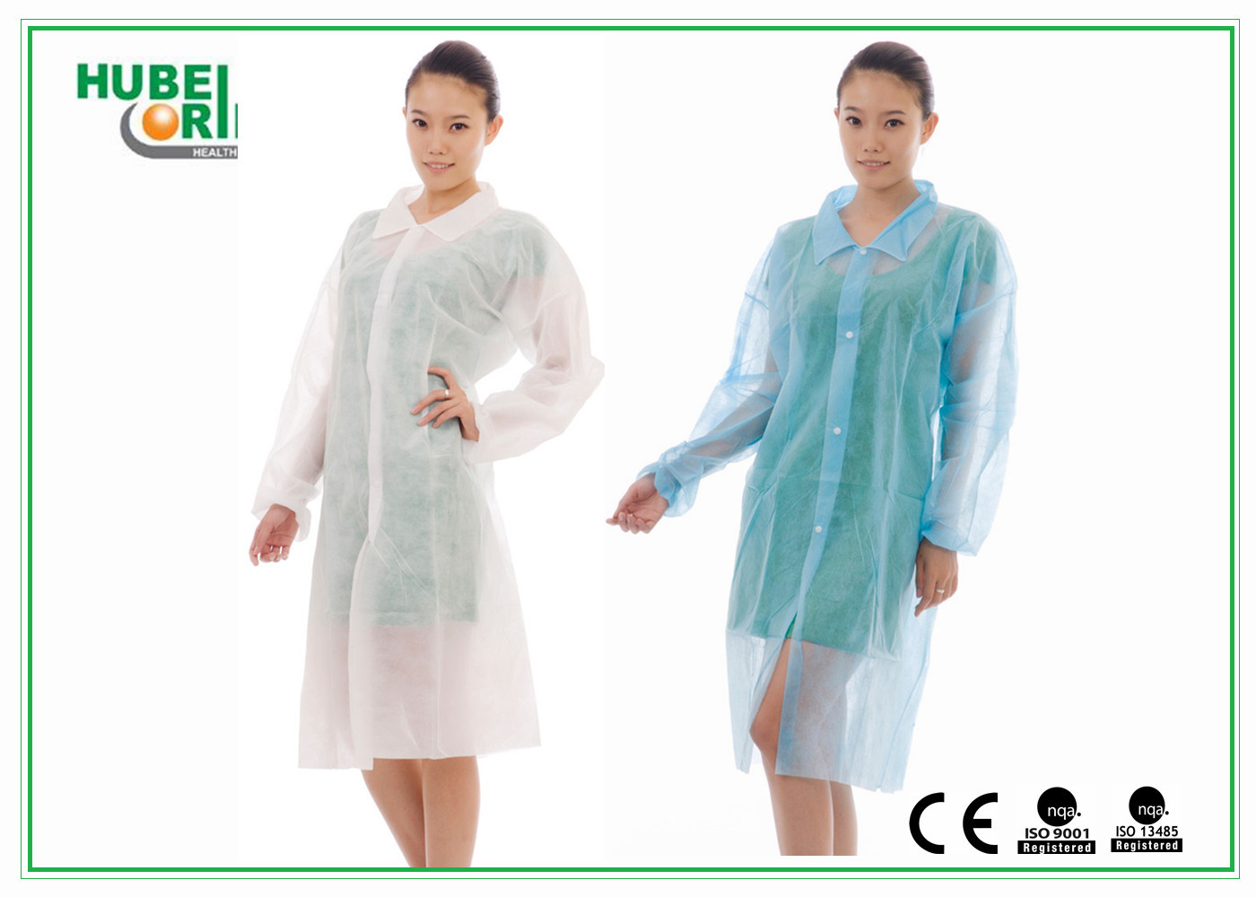 เสื้อผ้าห้องปฏิบัติการ PP / เสื้อผ้าเยี่ยมชมที่มีสนาปแบบสําหรับโรงพยาบาลสําหรับ Unisex Nonwoven