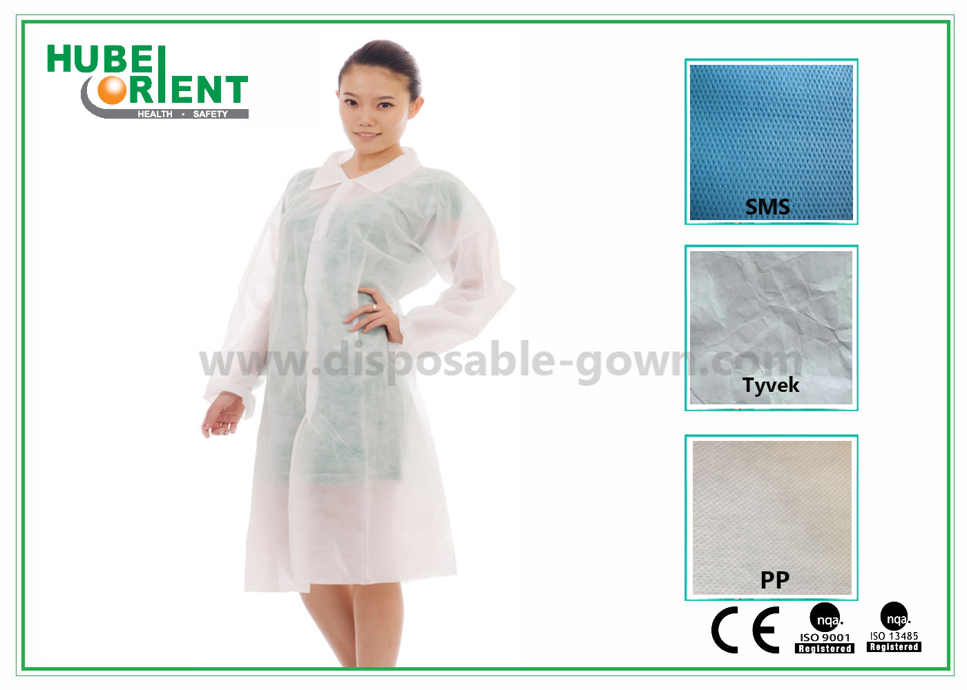 สําหรับขายยอดขาย เสื้อคลุมแล็บสําหรับใช้งานครั้งเดียว พร้อมสปริง เพื่อป้องกันน้ํามันและฝุ่นในอุตสาหกรรมอาหาร