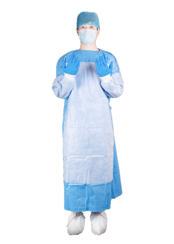 เสื้อผ่าตัด SMS ที่ใช้ได้เพียงครั้งเดียว ที่เสริมแรง มีข้อมือผูกสําหรับห้องผ่าตัด/การวิจัย